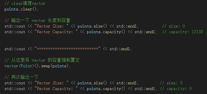// 从这里将 vector 的容量强制置空
